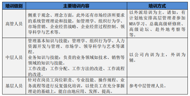 為保證準(zhǔn)確的識別培訓(xùn)需求、制定并實施培訓(xùn)計劃,公司每年發(fā)放《公司員工培訓(xùn)需求調(diào)查表》,以此收集各部門員工的培訓(xùn)需求,并以此制定培訓(xùn)計劃。依據(jù)總體培訓(xùn)規(guī)劃,公司明確了分級培訓(xùn)體系,分別針對高管人員、中層人員和基層人員確定相應(yīng)的培訓(xùn)內(nèi)容及培訓(xùn)方式,使得培訓(xùn)項目的實施更加符合公司整體戰(zhàn)略發(fā)展規(guī)劃。